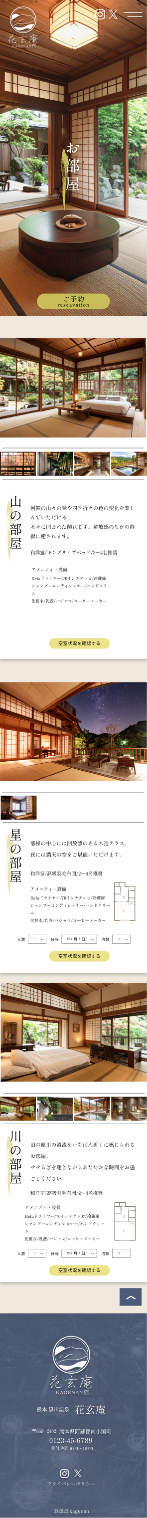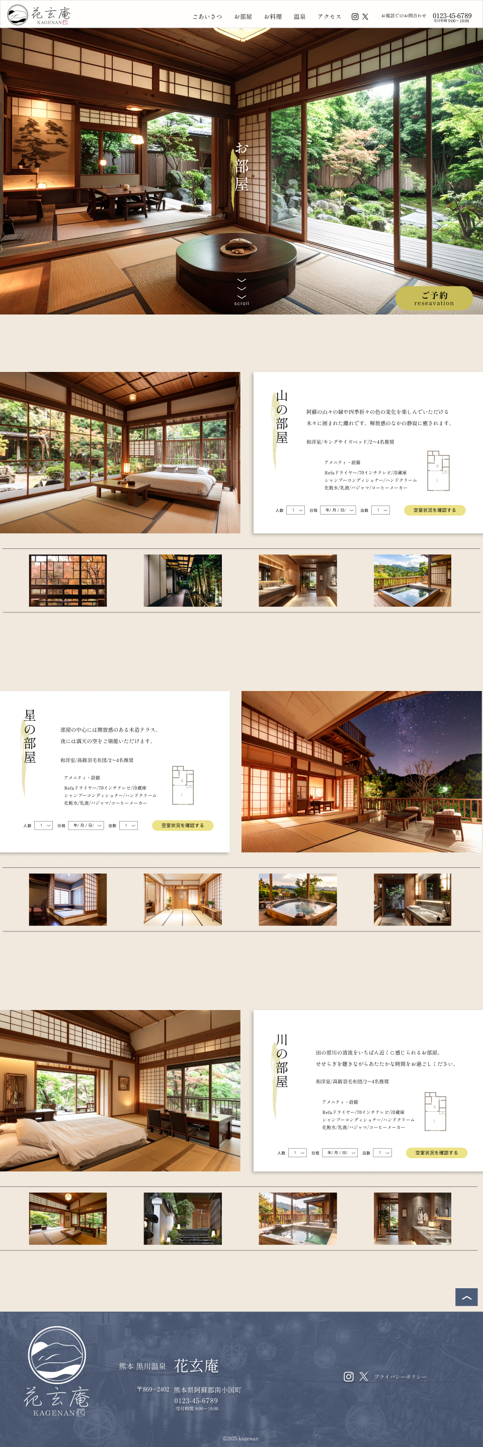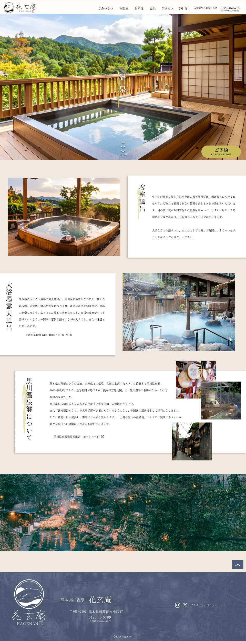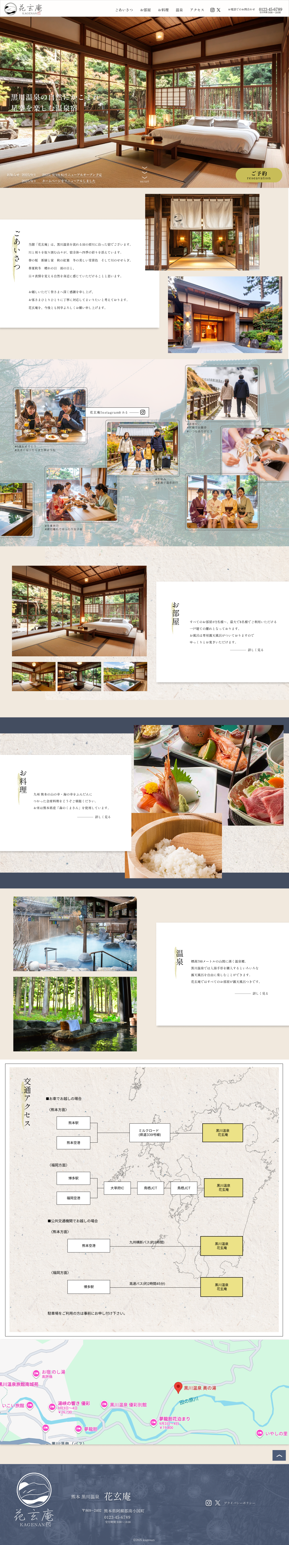 熊本・黒川温泉にある旅館「花玄庵」(架空)のWebサイトのリニューアル。 山川の自然、星空が自慢。現在メインの客層は50〜60歳の夫婦二人組。 大幅リフォームの機会にWebサイトとロゴを新たにしたい。